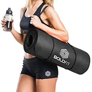 Boldfit Yoga Mats for Women and Men NBR Material with Carrying Strap, 10mm Extra Thick Exercise Mats for Workout Yoga Mat for Women for Workout, Yoga, Fitness, Exercise Mat Anti Slip Yoga Mats – Black